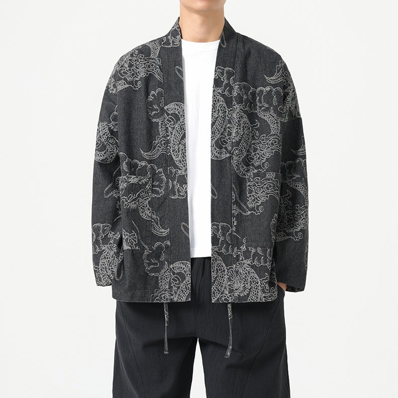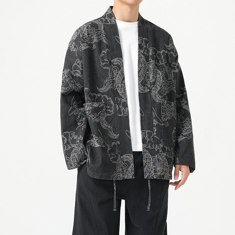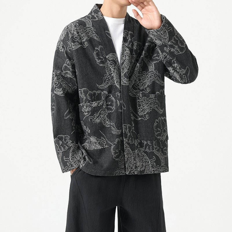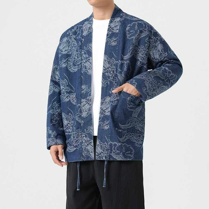 Dragon Robe Print Loose Fit Denim Jacket – Chinese Style Streetwear