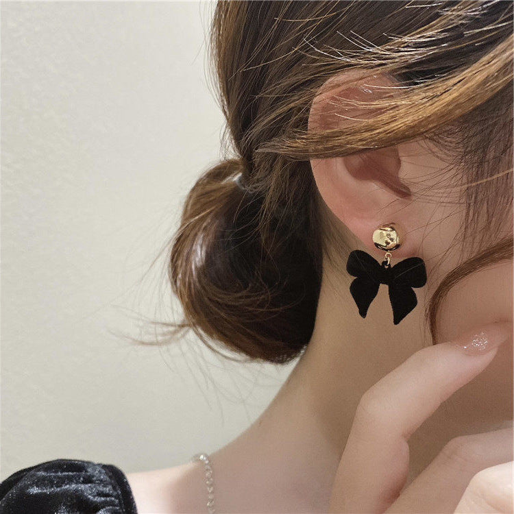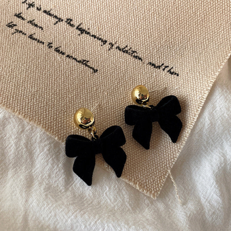 Elevate your look with these vintage-inspired black plush bow earrings, blending French retro charm with soft Korean-style elegance. Designed to flatter any outfit, they’re a perfect choice for casual or dressed-up moments.