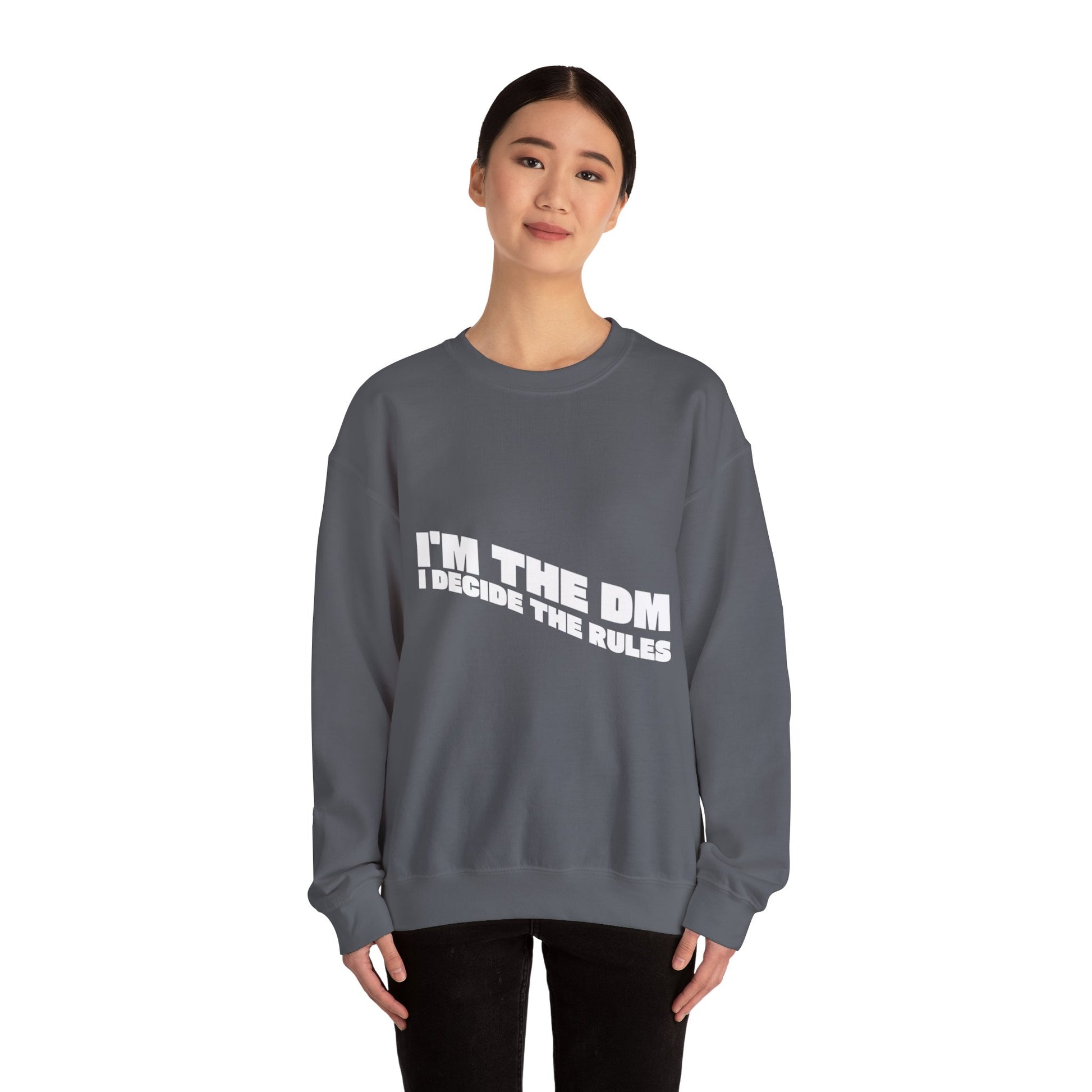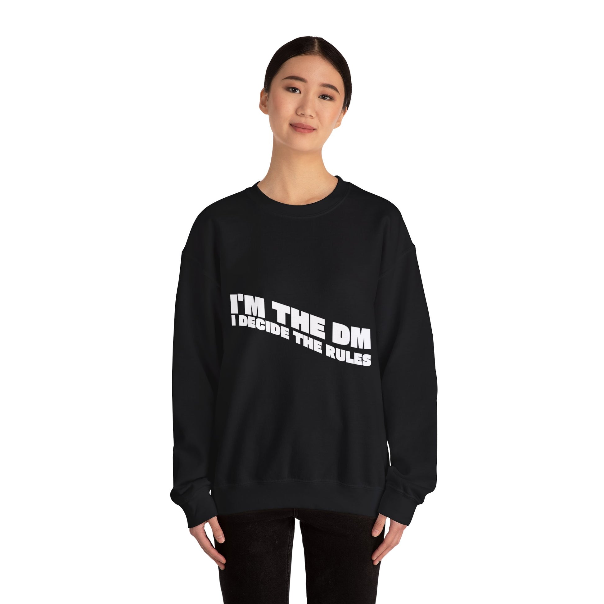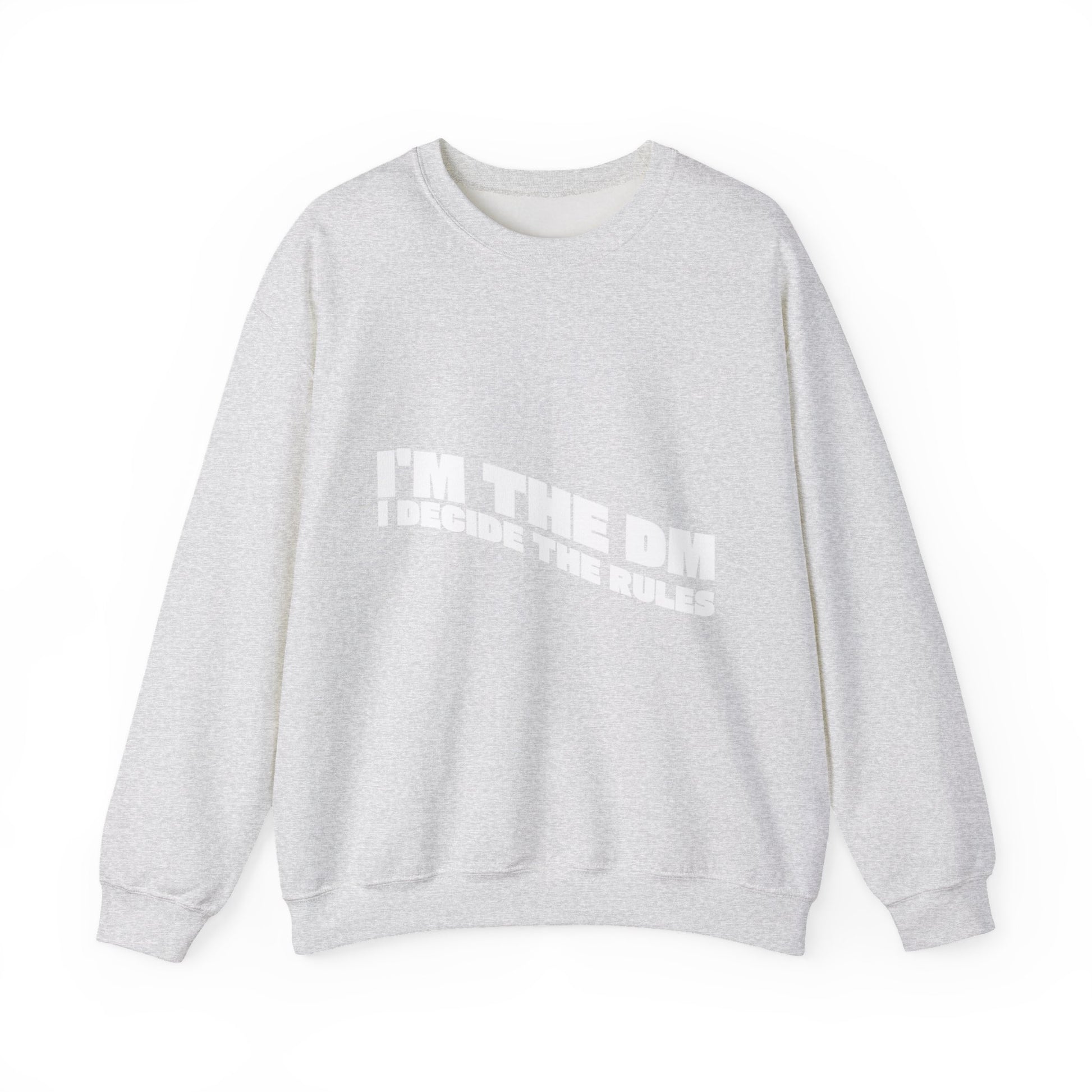 Lead every session in style. This unisex Heavy Blend™ crewneck sweatshirt is made for tabletop rulers and rule-makers who run the story and the room. Featuring the bold “I’m the DM, I Decide the Rules” graphic, it’s cozy, confident, and campaign-ready.