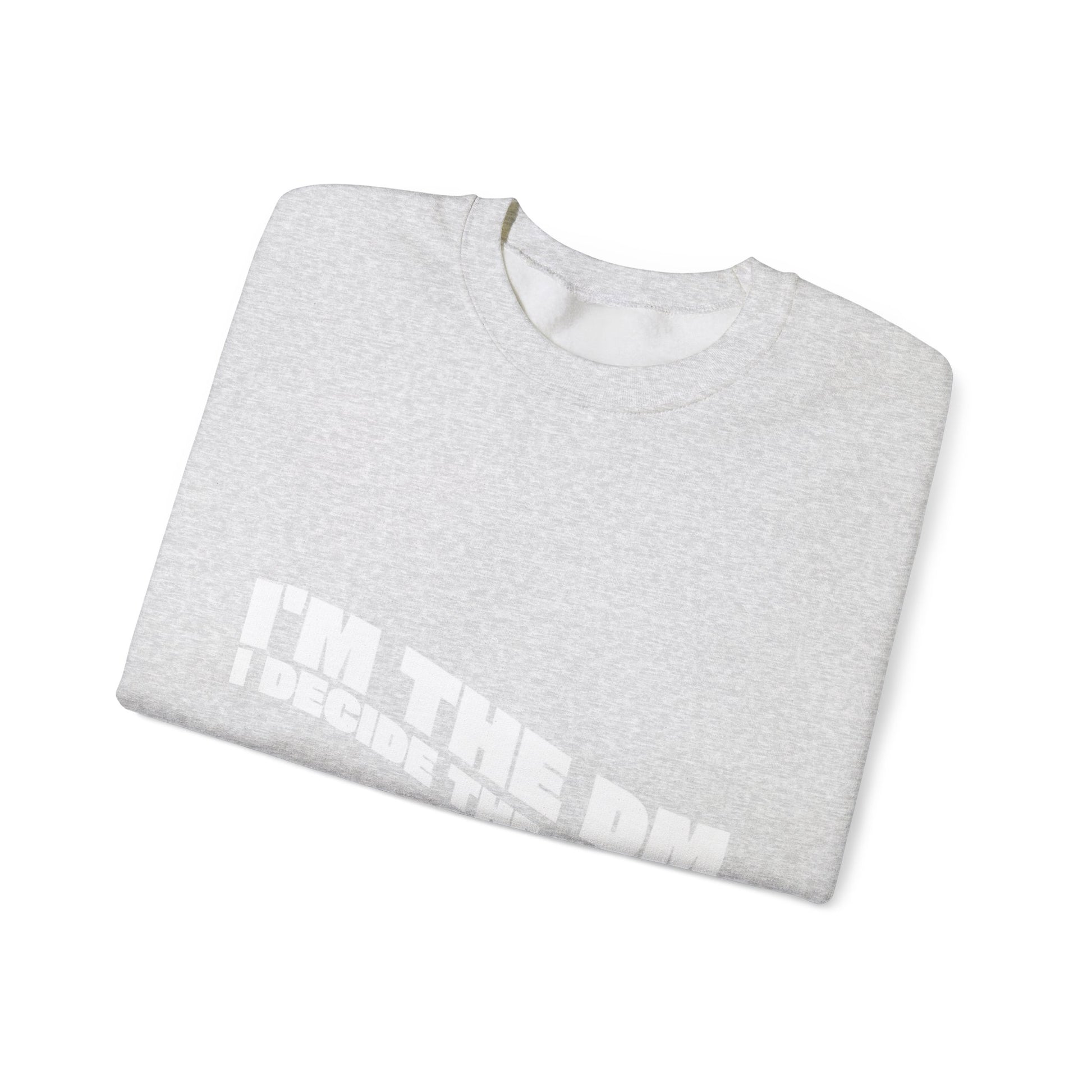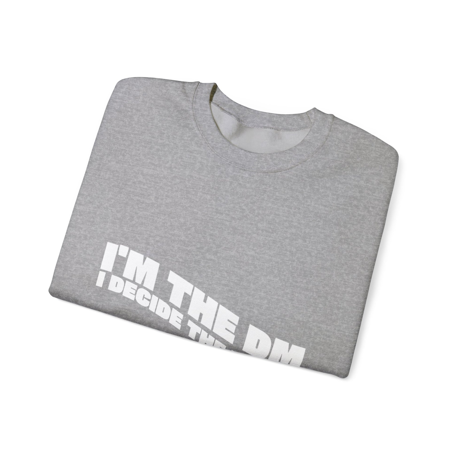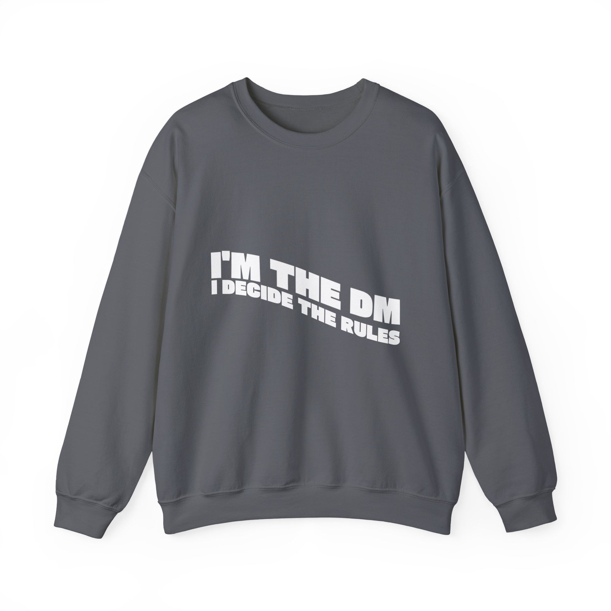 Lead every session in style. This unisex Heavy Blend™ crewneck sweatshirt is made for tabletop rulers and rule-makers who run the story and the room. Featuring the bold “I’m the DM, I Decide the Rules” graphic, it’s cozy, confident, and campaign-ready.