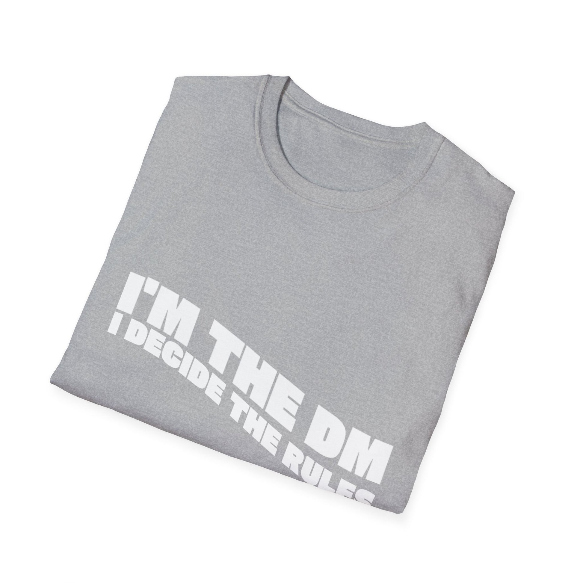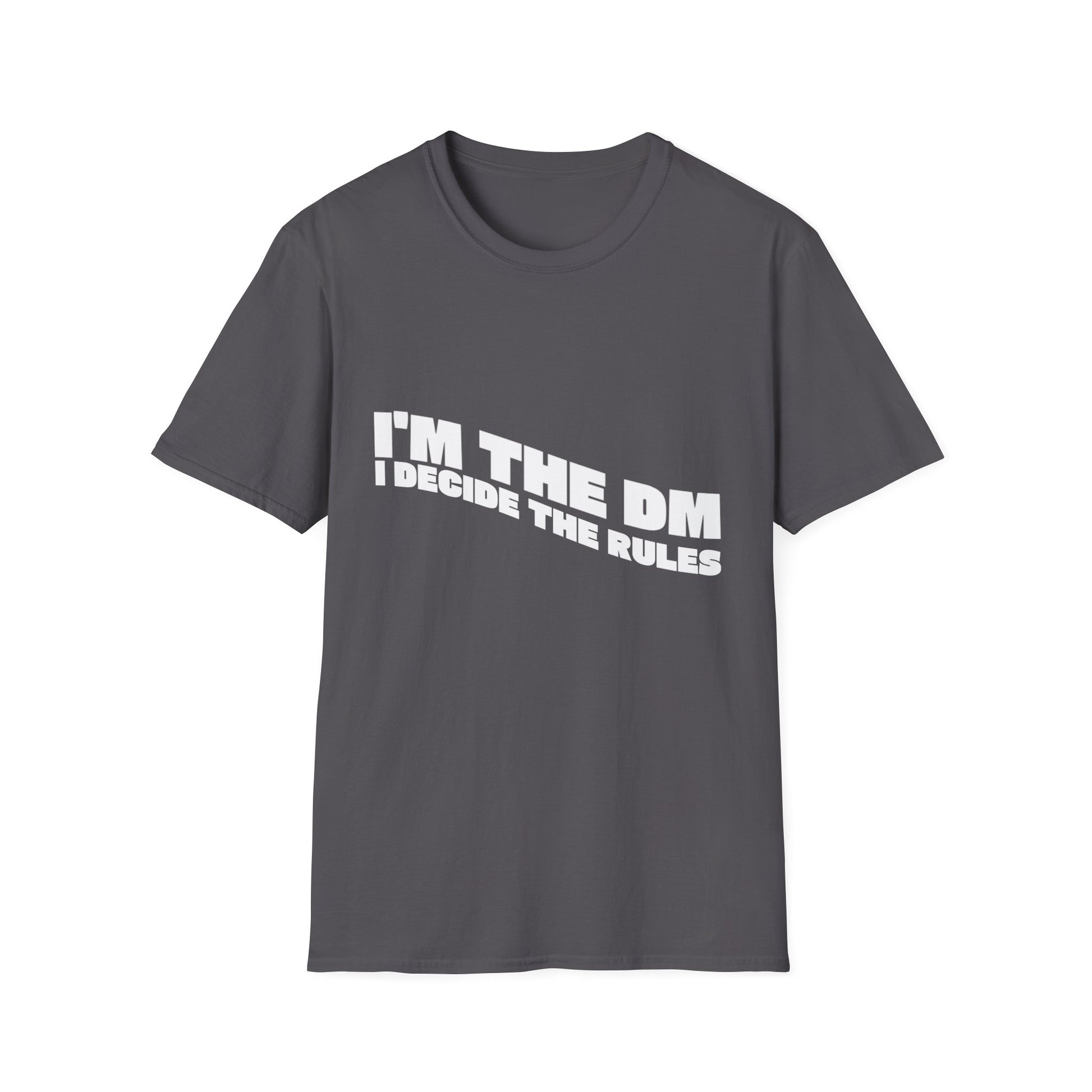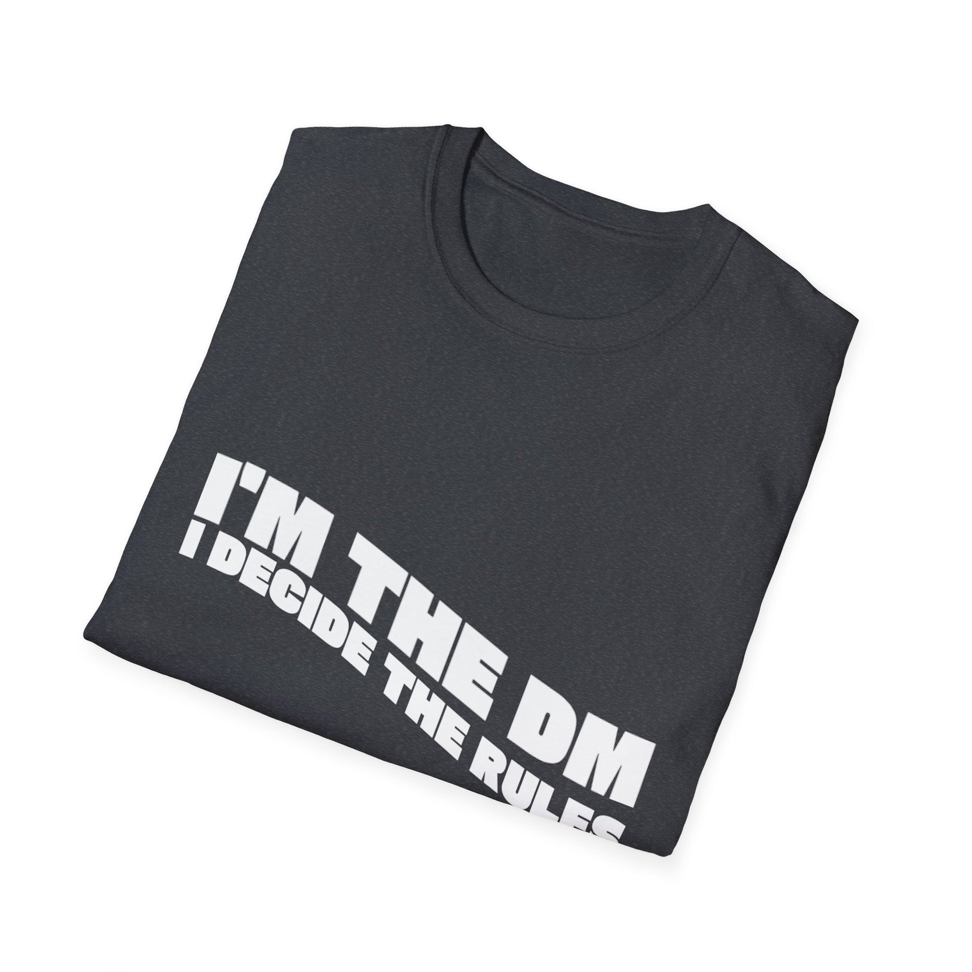 Assert your table authority with the I’m the DM Tee — a lightweight, unisex softstyle t-shirt designed for dungeon masters who call the shots. Featuring the bold statement “I’m the DM, I Decide the Rules,” this shirt is a must-have for D&D lovers, tabletop storytellers, and game night hosts who rule with style.